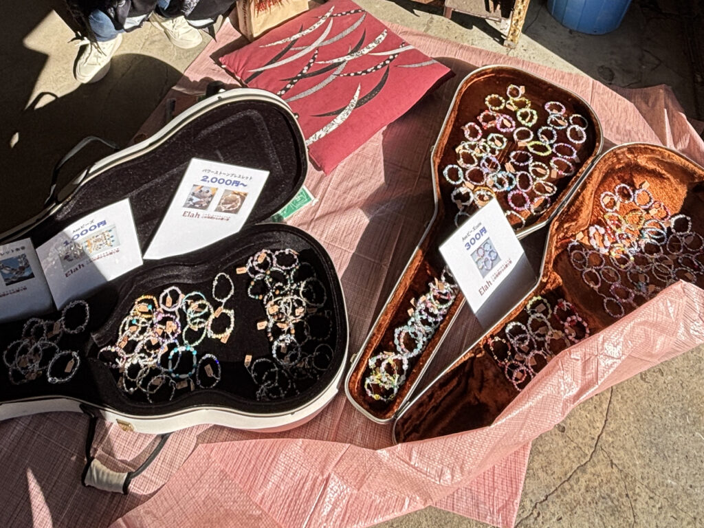 11月16日(日曜日)、用瀬町で行われた用瀬さんぽ市で、アストロラーベ&Elahとして出店しました。(アストロラーベについては、こちらのWebページをご覧ください) 気持ちの良い秋晴れの中、広げたギターケースに商品を並べて販売しました。たくさんの人に手にとって見ていただきました。ありがとうございました!